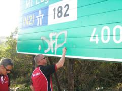 Graffiti Tags being removed from signage by G.R.S