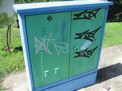 Graffiti Marker Pen Tags removed from Telecom box by G.R.S
